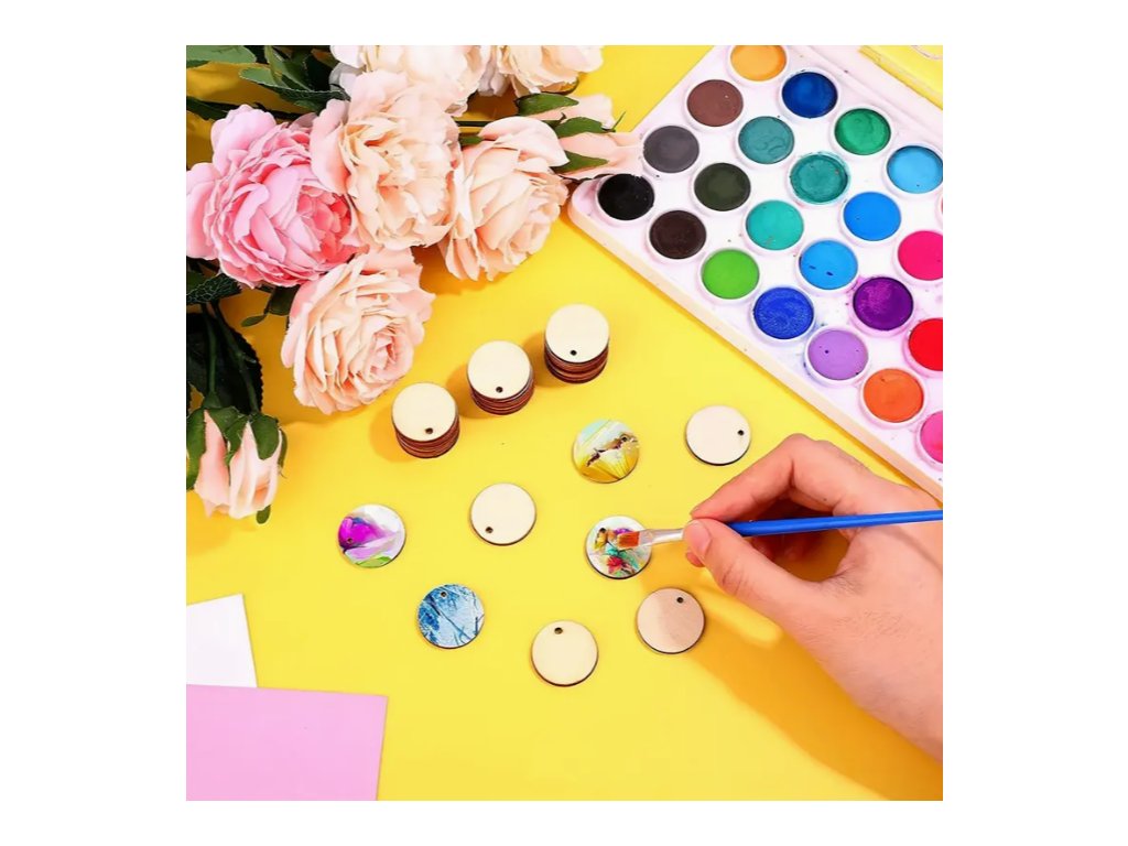 A 25 mm átmérőjű felakasztható fa korong kiváló alapanyag különféle kreatív projektekhez és dekorációkhoz. A natúr fa felület könnyen festhető, rajzolható, gravírozható vagy lakkozható.
