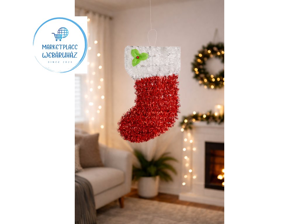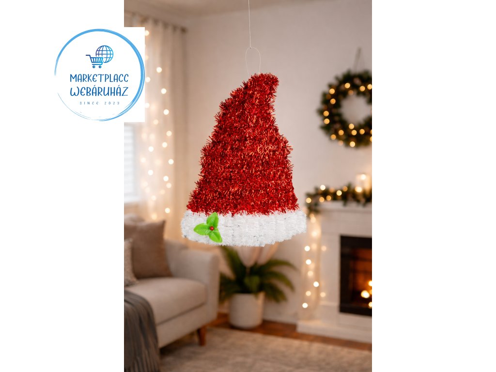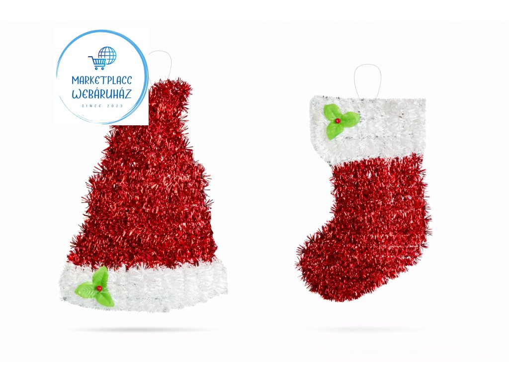 karácsonyi dekor, mikulás sapka dekor, mikulás csizma dekor, csillogó karácsonyi dísz, karácsonyi falidekor, ünnepi dekoráció