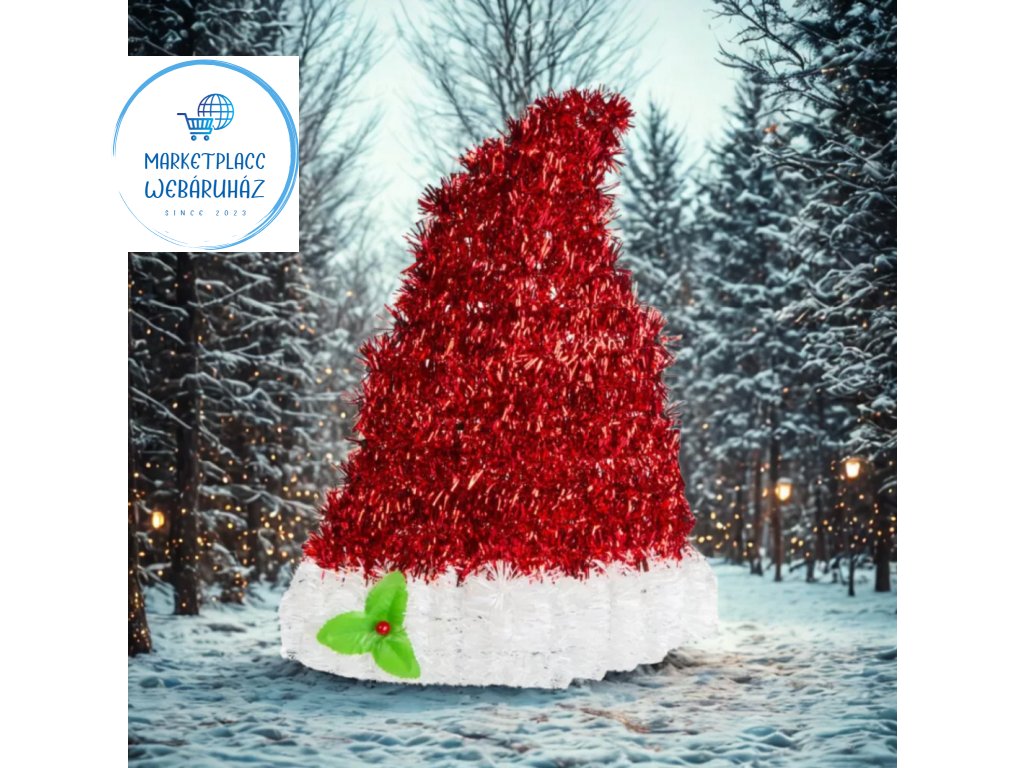 Látványos, csillogó felületű karácsonyi dekoráció, amely klasszikus mikulásos formáival azonnal ünnepi hangulatot teremt.