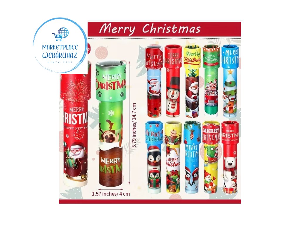 Színes, karácsonyi mintás kaleidoszkóp gyerekeknek, amely játékosan varázsolja el a kicsiket.
