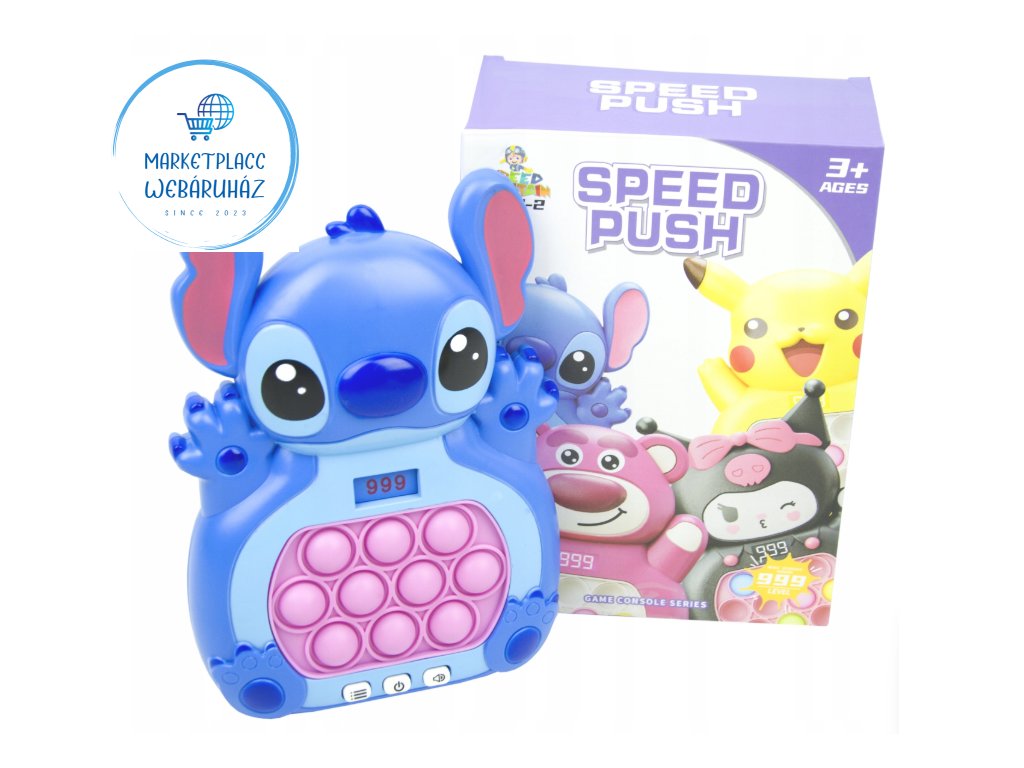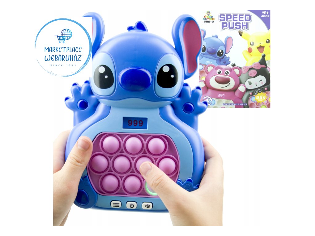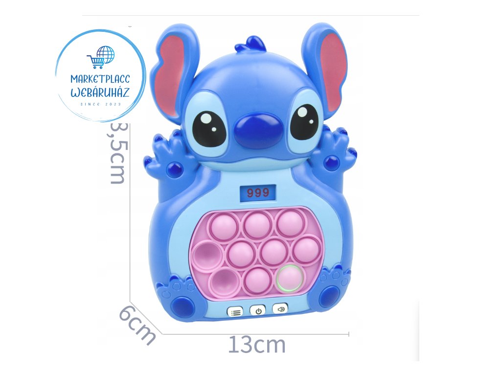 push bubble játék, pop it konzol stitch, reflex játék, koncentráció fejlesztő játék, szenzoros stresszoldó, elektronikus ügyességi játék 3+