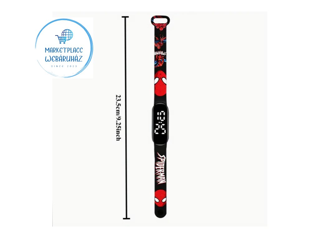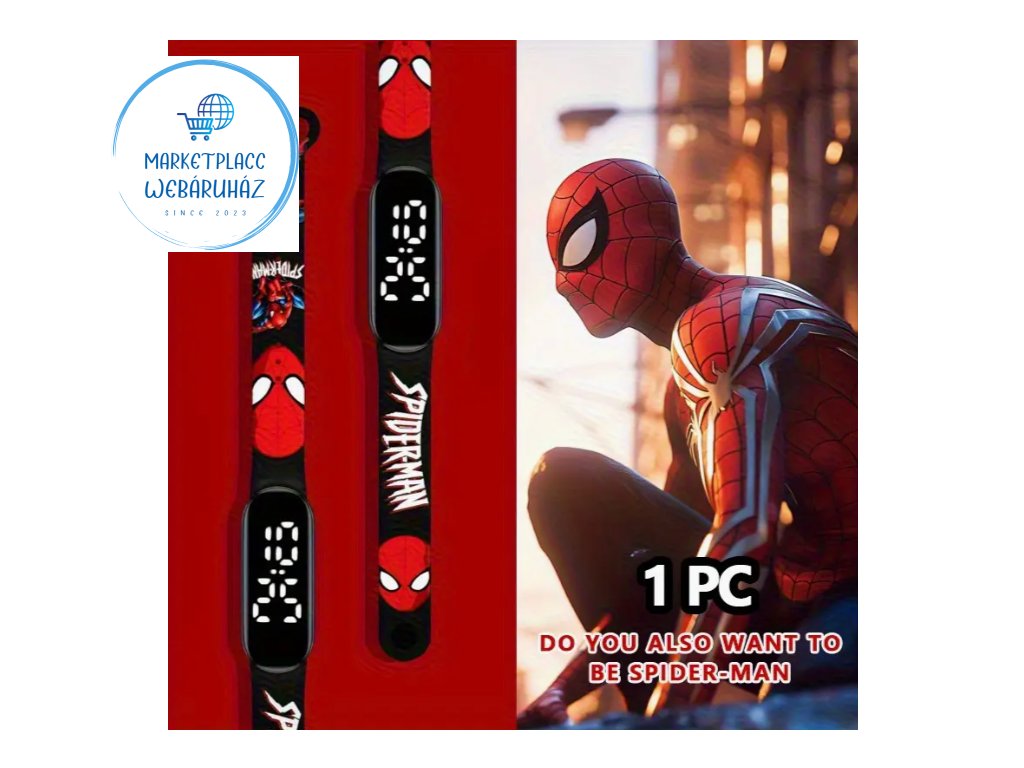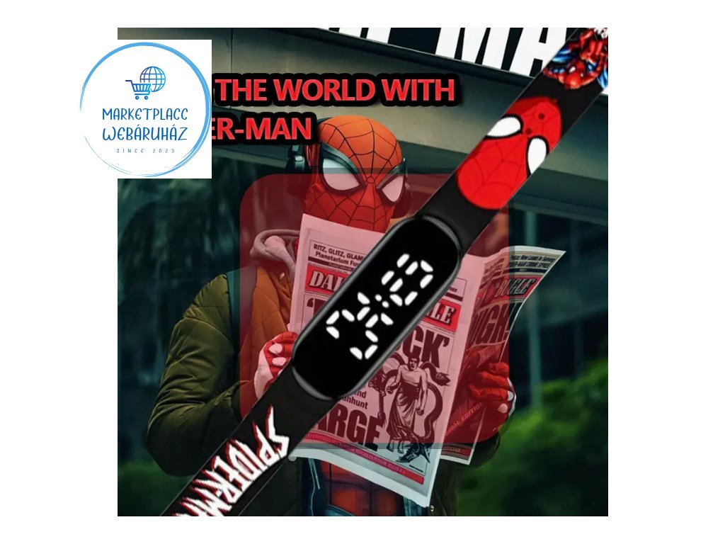 🕷️ Pókember mintás LED kijelzős gyerek karóra