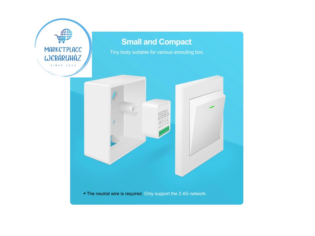Kis méretének köszönhetően ez a Tuya kompatibilis Wi-Fi relé könnyedén elrejthető a villanykapcsoló mögött, a szerelvénydobozban. Így láthatatlanul, falbontás vagy vésés nélkül teheted okossá régi kapcsolódat.